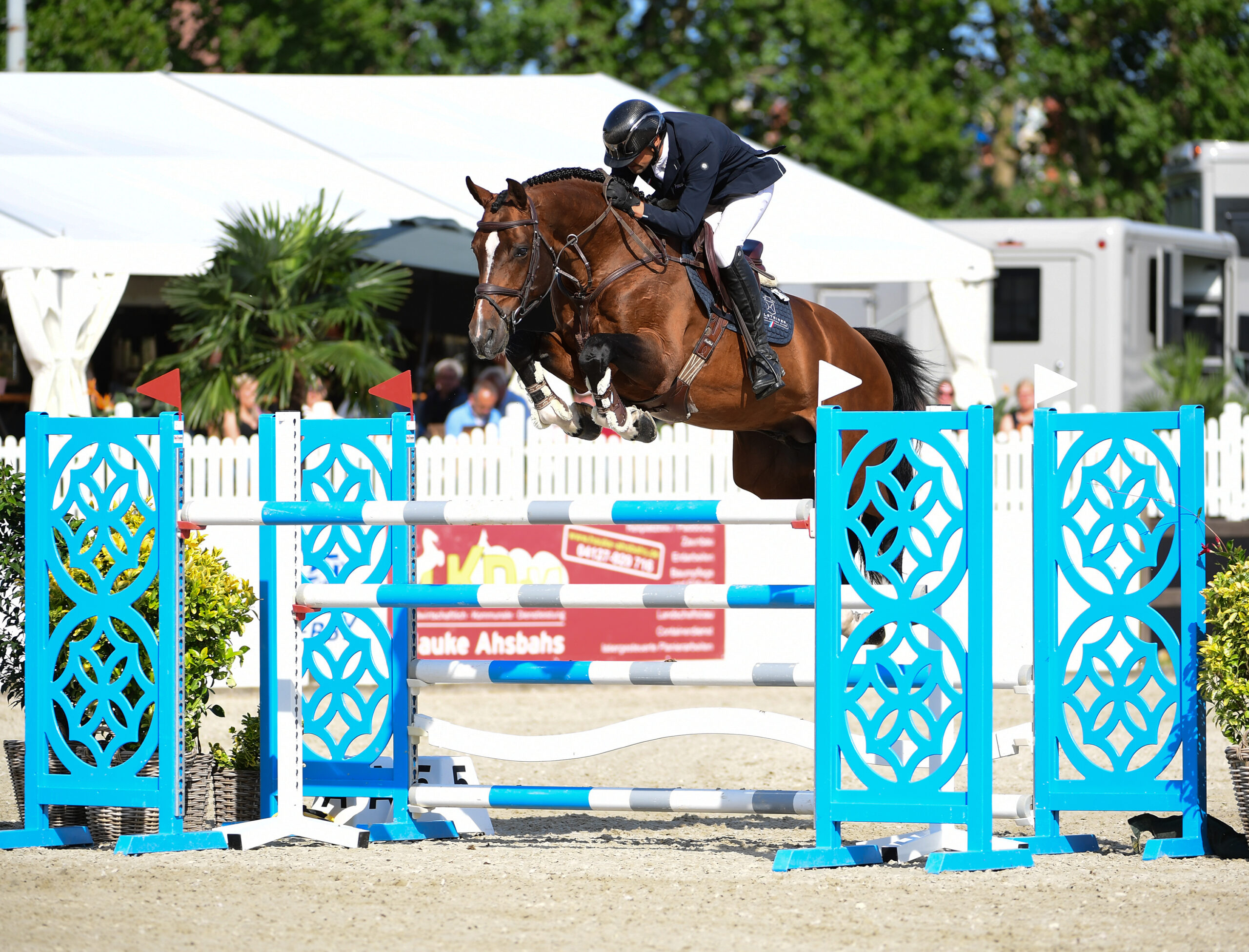 Keaton står i rampljuset både genom sina egna internationella sportprestationer och genom sitt höga avelsvärde. Denna nioårige son till Kannan förkroppsligar den klassiska Holsteinertypen och utmärker sig särskilt genom sina mycket goda grundgångarter. Dessutom väcker han uppmärksamhet genom sin exceptionella kapacitet och sin försiktiga hoppning. Redan i de tidiga skedena av sin tävlingskarriär presterade han på hög nivå, exempelvis vid Bundeschampionatet 2021. Nu kan han blicka tillbaka på internationella resultat upp till 1.45 m, och han har mer än infriat de höga förväntningar som ställdes på honom. Samtidigt stiger förväntningarna inför hans fortsatta utveckling i sporten. Keaton erbjuder uppfödarna ett genetiskt alternativ som kombinerar högklassigt franskt blod med en beprövad stolinje känd för att producera mästerskapshästar – något som gör honom till ett mycket intressant hingstval för många Holsteinerston.